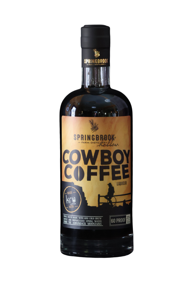 One of our best creations to date, our cowboy coffee is delicious. We use Madagascar vanilla beans, locally roasted cold brew coffee from Kru Coffee of Saratoga Springs, New York and of course unprocessed Adirondack spring water to craft this unique spirit. Enjoy it on the rocks or to create an amazing cocktail from White Russians to Espresso Martinis, our signature Gunslinger Cocktail is sure to be a hit at any occasion.