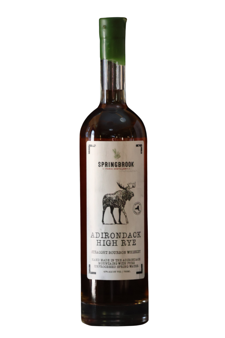 Springbrook’s Adirondack High Rye Bourbon is perfect for the discerning whiskey drinker or cocktail enthusiast. Our local corn, rye, malted barley and heavy char oak barrels offer the perfectly balanced combination of bold and sweet. This complex bourbon is flawless in a Manhattan, Old Fashioned or straight up. On the nose, you get heavy caramel and hints of vanilla. The body gives flavors of oak and toffee. This is all underscored by the complex and spicy flavor of rye. Last but not least, the finish is long and rich with a balance between dry and sweet. Adirondack High Rye Bourbon won a Silver Medal at the New York State International Spirits Competition.